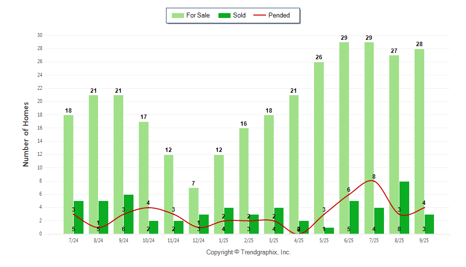 September property sales were 3, down 50% from 6 in September of 2024 and 62.5% lower than the 8 sales last month.
